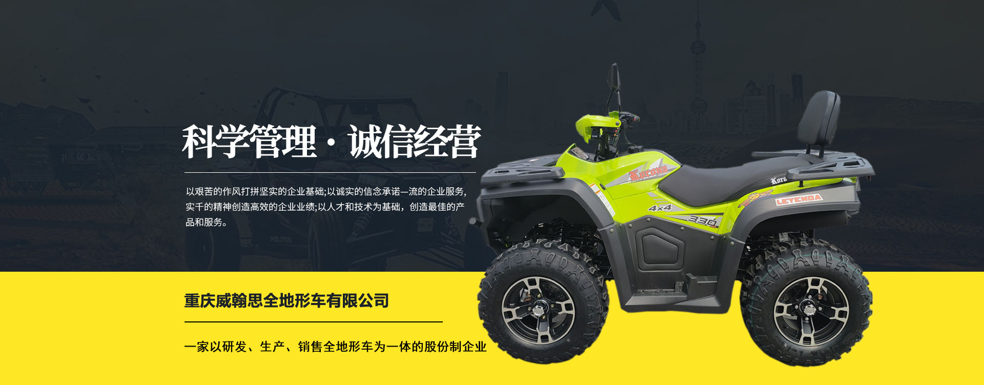 重慶威翰思全地形車有限公司成立于2016年9月,一家以研發、生產、銷售全地形車為一體的股份制企業。公司銷售額超過5000萬?,F有專業市場售后服務團隊。公司秉承“敬業、超越、活力、用戶至上”的企業精神,“以人為本,合作共贏;”的核心價值觀,“嚴格管理創優質、名牌戰略拓市場”的質量方針,使公司一步步邁上新的臺階。公司與重慶航天巴山摩托車制造公司達成戰略合作協議。共同出資致力于沙灘車旅游市場產品研發,項自運營指導,市場維護等全方位市場拓展。重慶航天巴山摩托車制造公司授權;重慶威翰思全地形車有限公司為中國區唯─戰略合作伙伴。